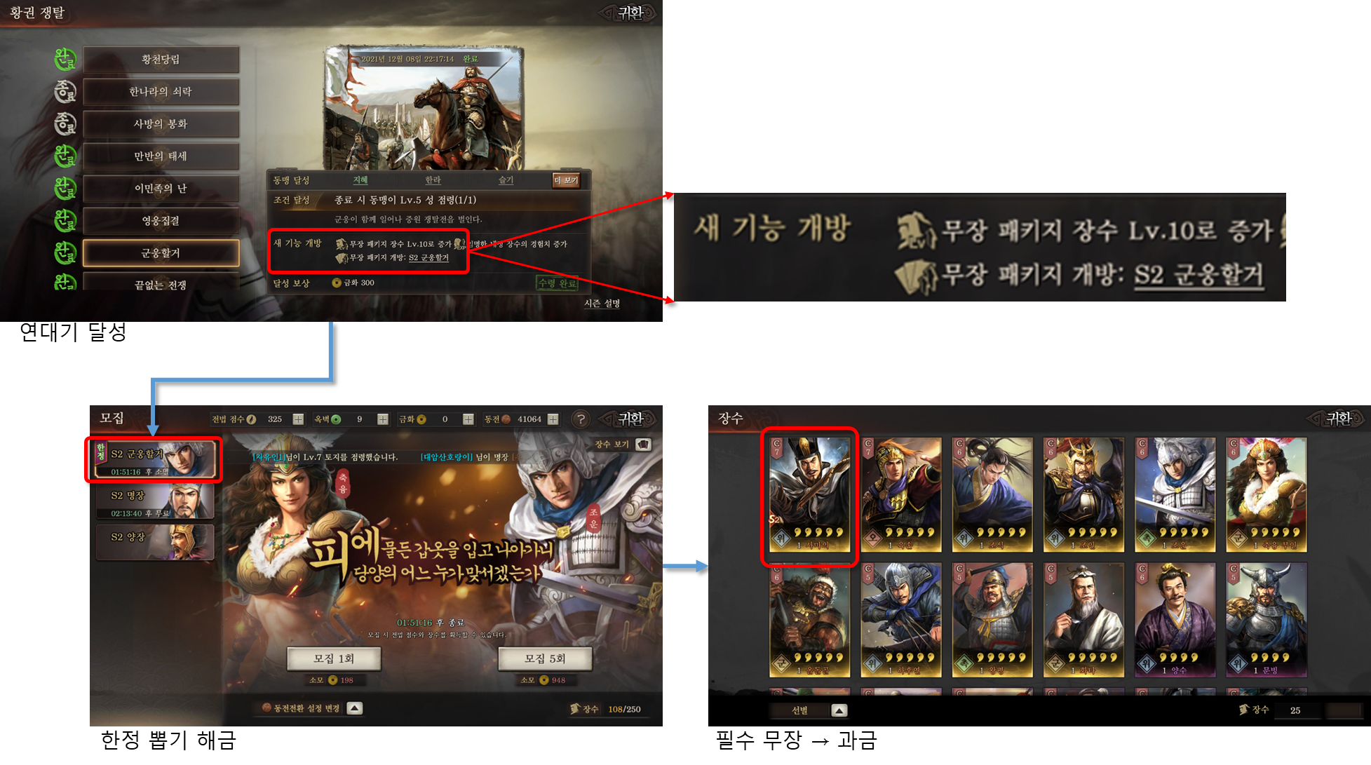 - 특정 장수에 대한 욕구는, '한정 뽑기'와 '덱' 두 정보를 유저가 인지할 때 자극 할 수 있음