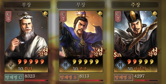 - 아래 예시의 화타, 조조 만 가지고 있는 유저는 '사마의'를 뽑기 위해 과금 욕구 자극
